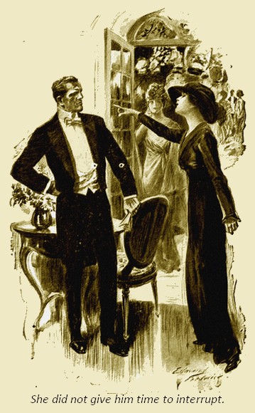There was a brief silence—not without a certain dramatic significance to the girl who stood there with slightly parted lips. The smooth serenity of her forehead was broken by a frown; her beautiful blue eyes were troubled. She seemed somehow to have dilated, to have drawn herself up. Her air of politeness, half gracious, half condescending, had vanished. It was as though in spirit she were preparing for battle.