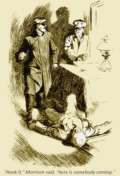 Morrison sat in his study turning over a pile of documents and tearing them up one after another. A Bradshaw lay open by his side, a fitted kit bag stood on a side table. The ruined man was making preparations quite coolly to escape. He little dreamt of what was going on at the same moment in the courthouse at Middlesworth. He had promised Bentley to go down and give him the support of his presence, but he had dreaded it too much at the last moment. It seemed as if he had got everything in order at last, for he sighed and looked at his watch.
