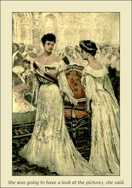 With her head in a whirl but her senses quite alert, Jessie crossed the room. As she came close to the queen, a lady-in-waiting rose up quite casually and moved away, and Jessie slipped into the vacant seat. She could see now how lined and wearisome behind the smiles was the face of the Queen of Asturia. And yet it was one of the most beautiful faces in the world.