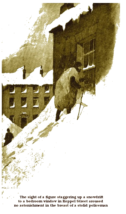 THE SIGHT of a figure staggering up a snow drift to a bedroom window in Keppel Street aroused no astonishment in the breast of a stolid policeman. It was the only way of entry into some of the houses in that locality. Yet a little further on the pavements were clear and hard.