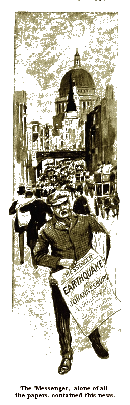For the time being the scare was kept well in hand. What men were most anxious to know, though they dared hardly whisper the question, was whether any disease had broken out as yet. It was a little after two o'clock that the Evening Flashlight settled the question. A boy came yelling down the Strand with a flapping of papers on his shoulders.