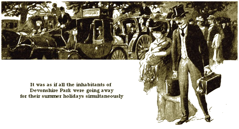 It was a fairly good-humoured crowd, if a little grim, as yet. But the authorities had serious faces, whilst quite half the police in streets looked shy and out of place as well they might be seeing that several thousand of them had been drafted into London from all parts of the country. Towards midday a sport was added to the amusement of the great mobs that packed the main streets. There was not the slightest reason why all London should not be at work as usual, but, by mutual consent, the daily toil had come to a standstill. It was grilling hot with a sun that made the pavement gleam and tremble in the shimmering haze and there was little to quench the thirst of the multitude. But then did not London teem from end to end with places of public entertainment where thirsts were specially catered for?
