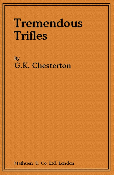 These fleeting sketches are all republished by kind permission of the Editor of the Daily News, in which paper they appeared. They amount to no more than a sort of sporadic diary—a diary recording one day in twenty which happened to stick in the fancy—the only kind of diary the author has ever been able to keep. Even that diary he could only keep by keeping it in public, for bread and cheese. But trivial as are the topics they are not utterly without a connecting thread of motive. As the reader's eye strays, with hearty relief, from these pages, it probably alights on something, a bed-post or a lamp-post, a window blind or a wall. It is a thousand to one that the reader is looking at something that he has never seen: that is, never realised. He could not write an essay on such a post or wall: he does not know what the post or wall mean. He could not even write the synopsis of an essay; as "The Bed-Post; Its Significance—Security Essential to Idea of Sleep—Night Felt as Infinite—Need of Monumental Architecture," and so on. He could not sketch in outline his theoretic attitude towards window-blinds, even in the form of a summary. "The Window-Blind—Its Analogy to the Curtain and Veil—Is Modesty Natural?—Worship of and Avoidance of the Sun, etc., etc." None of us think enough of these things on which the eye rests. But don't let us let the eye rest. Why should the eye be so lazy? Let us exercise the eye until it learns to see startling facts that run across the landscape as plain as a painted fence. Let us be ocular athletes. Let us learn to write essays on a stray cat or a coloured cloud. I have attempted some such thing in what follows; but anyone else may do it better, if anyone else will only try.