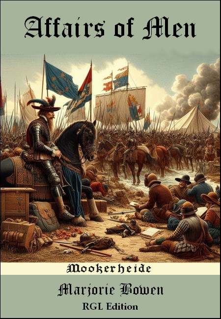 Real beauty is inspiring, and these vivid descriptions of sea and land-fights are only part of "Marjorie Bowen's" remarkable books; but we wish to especially point them out as having inspired Holland's greatest modern painter of military subjects, Hoynck van Papendrecht, to illustrate them in his masterful way. Being the great "Detaille" of the Netherlands, he is the very artist to respond to the atmosphere of Mooker Heyde, Naseby, St Denis, Namur and others. His great talent will prove equal to the one that conceived the "Dernières Cartouches."