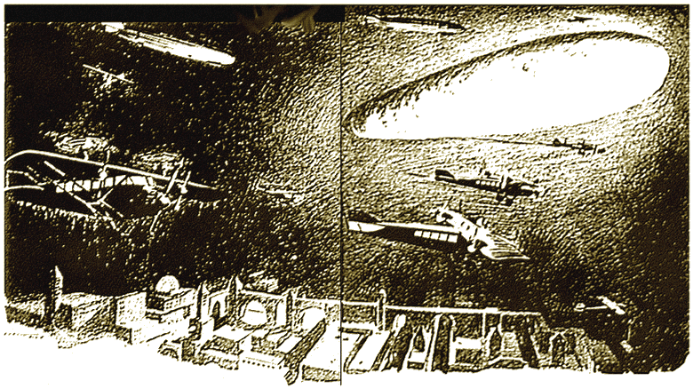For powerful planes and metal-shelled Zeppelins had climbed swiftly aloft to investigate the incomprehensible Thing that was poised high above Manhattan, and almost unbelievable reports were being sent earthward.